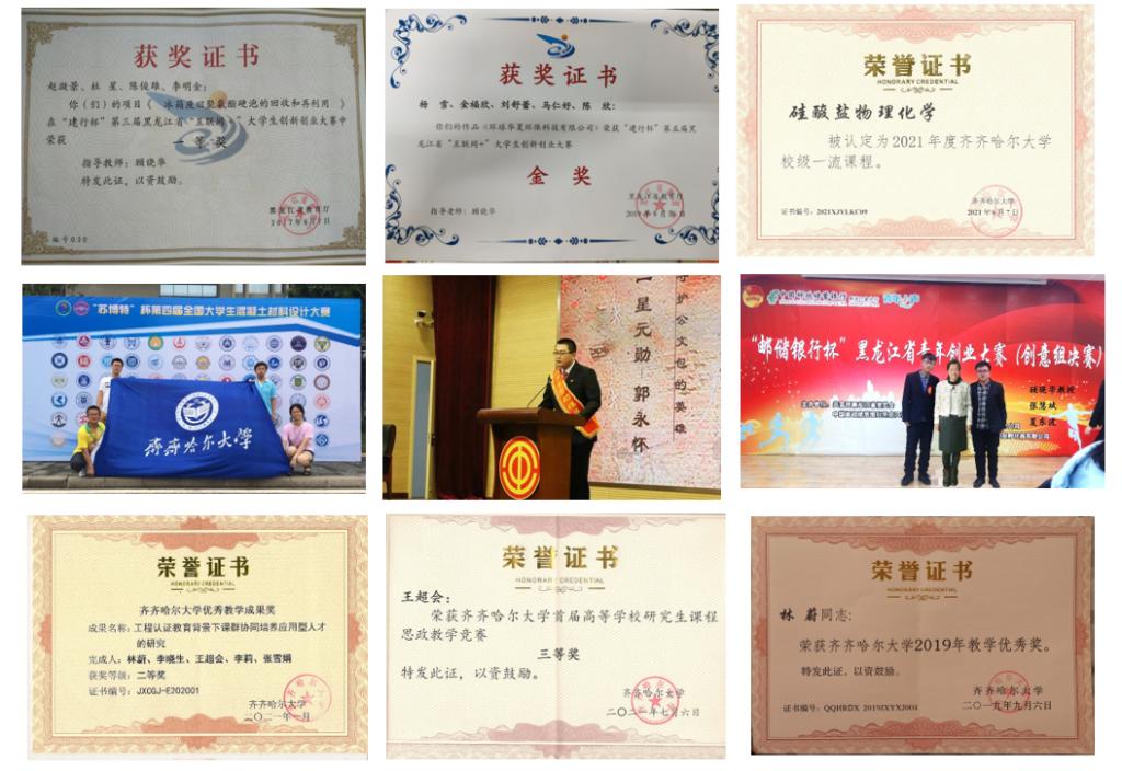 教学研究不断深入。专业教学团队获得了省级教研项目“工程认证教育背景下课群协同培养应用型人才的研究”、“高校学生个性化学习与综合素质提高研究”、“OBE理念下无机非金属材料工程专业教学体系和教学内容改革的研究与实践”、“无机非金属材料专业实习基地建设与实训教学的改革与实践”、“晶体学课程基于Mooc+翻转教学改革的研究”等5项,编写专著和教材5部。2017年第三届微课教学比赛中李晓生、林蔚分别获得三等奖,讲课竞赛中林蔚老师获得二等奖,董美伶、王玉慧获得三等奖。