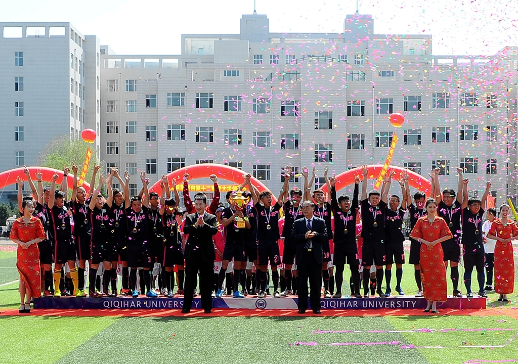 比赛正式开始前,与会校领导作为颁奖嘉宾,分别为此前举行的男子一万米、女子五千米等项目获得者以及校园足球联赛前三名学院颁奖。