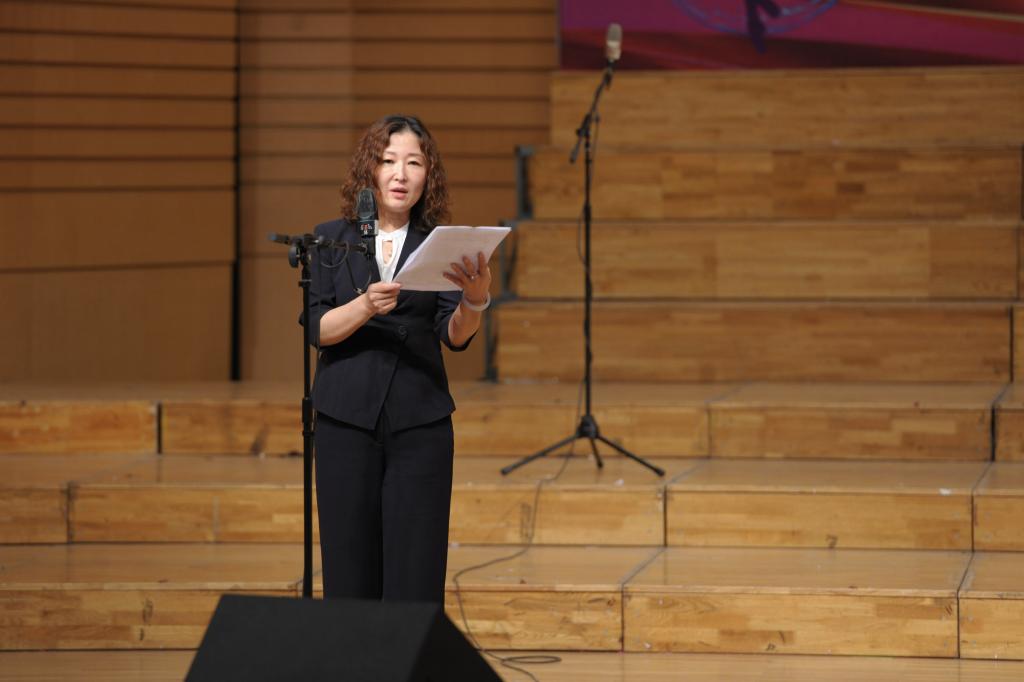 第二十届校园艺术节组委会主任,校党委副书记齐宏伟致闭幕词。她代表学校向在本届艺术节中获得优异成绩的先进集体和个人表示衷心的祝贺!向精心组织,积极参与本届艺术节的全体师生表示衷心的感谢!