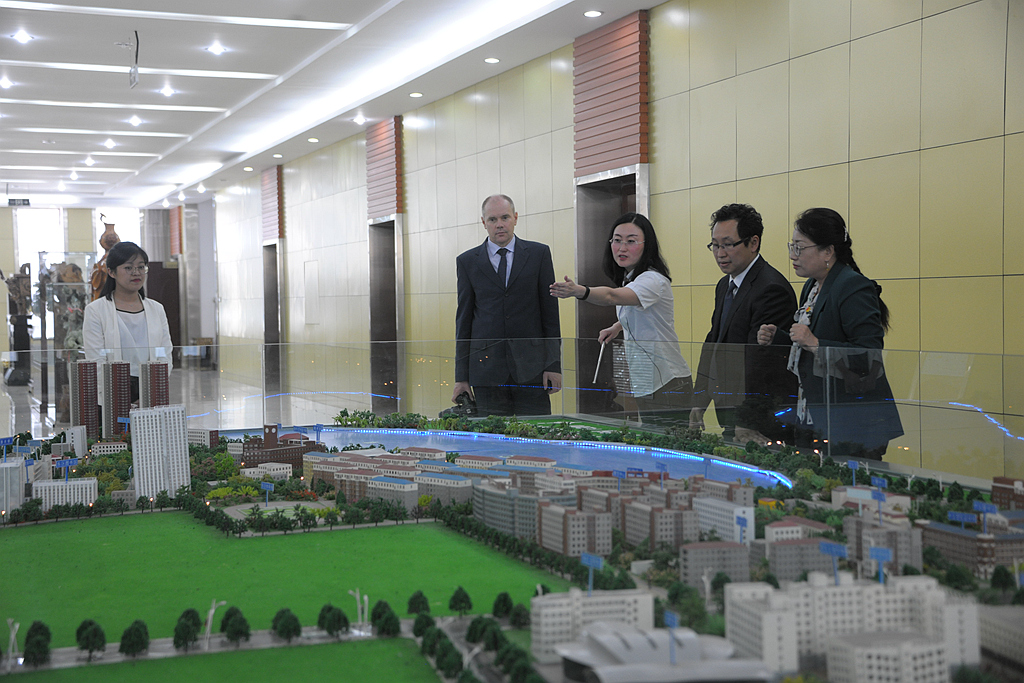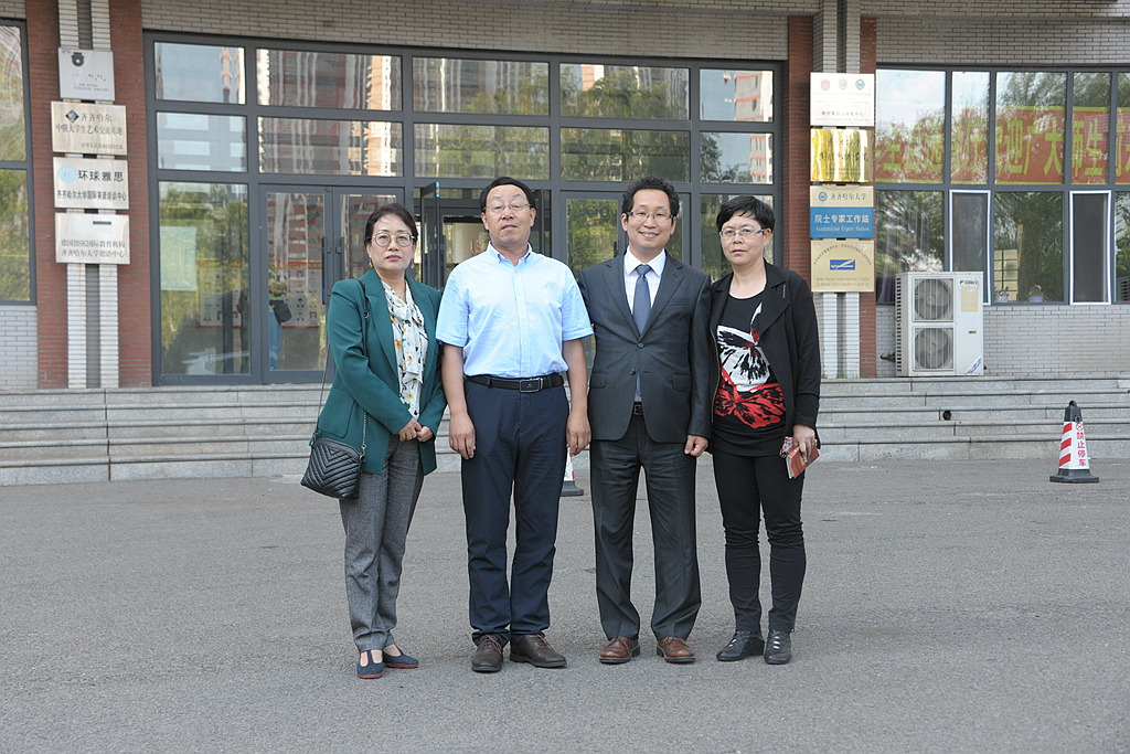 会谈后俄罗斯联邦驻华大使馆基先科先生和甘茹罗夫先生一行在国际交流合作处(国际教育学院)处长(院长)张坤的陪同下参观了校史馆和校园。