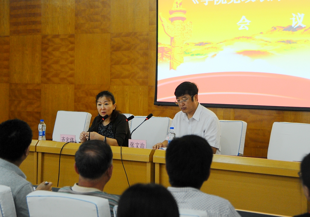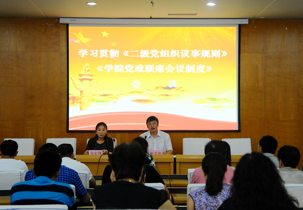 会前,张文治为各学院党政负责人,研究生部、离退休工作处、后勤管理处、图书馆、公共外语教研部、网络信息中心、资产运营管理中心党政负责人和机关党委书记解读了《中共LETOU国际米兰官网委员会二级党组织议事规则(试行)》《LETOU国际米兰官网学院党政联席会议制度(试行)》两个文件的精神和主要内容。