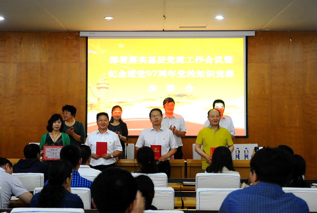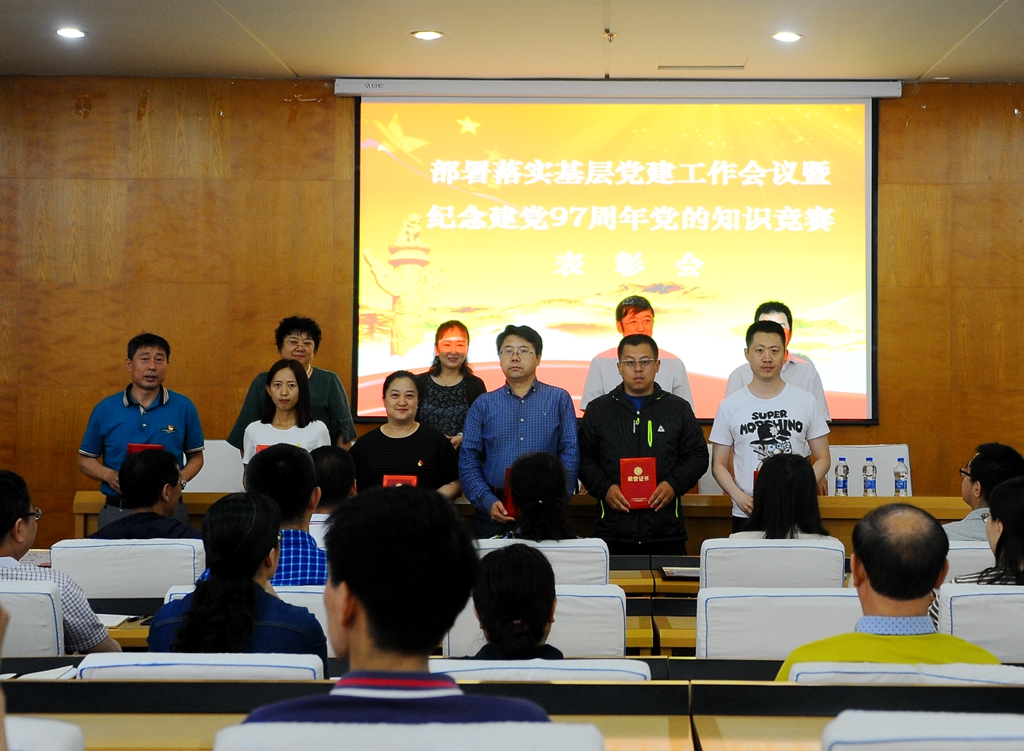 会上,学校党委对在庆祝建党97周年党的知识竞赛活动中取得佳绩的组织和个人进行了表彰,齐宏伟宣读了获得“优秀组织奖”的12个党委、直属党支部名单,张文治宣读了获奖的个人名单。