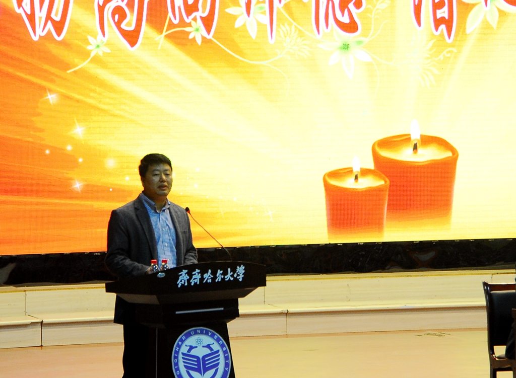 教师代表、省优秀教师、国家自然科学基金项目获得者、生命科学与农林学院王志刚教授在大会上发言。他首先祝全校的各位同事们节日快乐,幸福安康!他说,此时此刻最想表达的是感恩!感恩人生的每一位好老师!感恩人生路上所有的启蒙者、教导者、栽培者!感恩齐大的各位良师益友!感恩国家、人民对教师的厚爱!感恩学校的尊师重教,才有我们今天的欢聚一堂!在我们齐大,许多老师都是好老师,他们的事迹都是一部感人至深的巨著!多少个静谧的夜晚,他们笔耕不辍,为了上好一堂课,研读大量教材与文献;为了一个科学问题,翻阅大量科研论文;为了完成一些紧急任务,放弃盼望已久的休息日,熬红双眼,直到东方破晓;为教学和科研的一个细节,反复揣摩与试验。正因为我们在教育的沃野上翻动犁铧,我们的事业才生机勃勃、蒸蒸日上!他号召全体老师:“各位同事,让我们携手并肩,凝聚力量,再接再厉,共创LETOU国际米兰官网新的辉煌!”