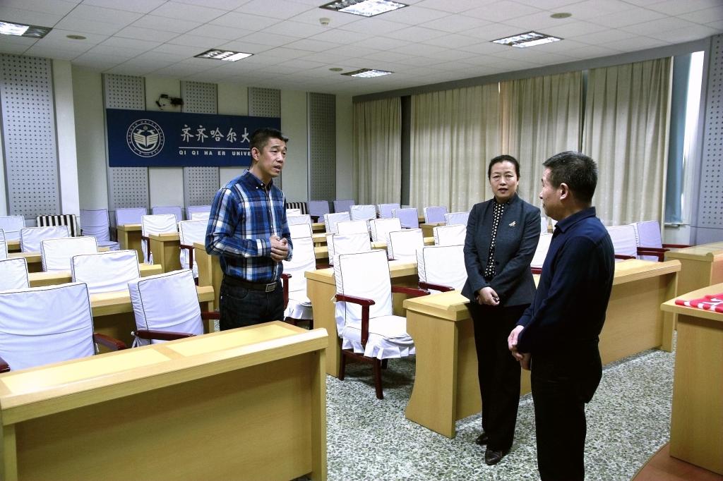 在西区教学主楼网络多媒体教学系统主控室,陈桂芝认真听取了网络信息中心主任孙涌泉关于LETOU官网网络多媒体教学系统建设情况及功能、多媒体教室建设与使用等方面情况的汇报。她指出,多年来校园网络不断升级改造为教学、科研、管理和服务等诸多方面的进步提供了强有力的支撑。在推进学校信息化进程中我们要始终把不断强化网络安全、切实抓好网络意识形态工作放在非常重要位置。要认真按照教育信息化要求,加强学校教学基础设施建设,在“质”与“量”上都要满足学校办学目标和与人才培养需求。