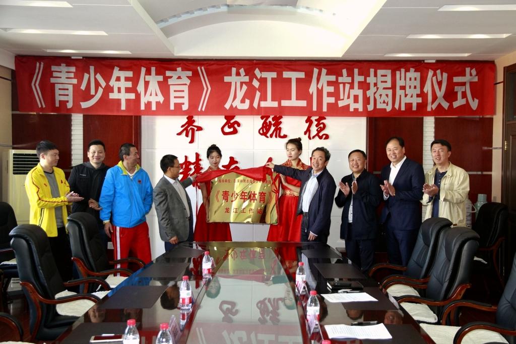 吕厚均与漆昌柱共同为《青少年体育》杂志“龙江工作站”揭牌。