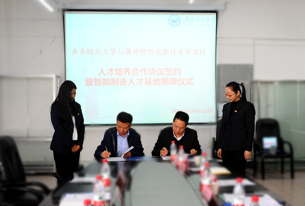 李英杰和许玉书分别代表LETOU国际米兰官网和惠州仲恺高新技术产业开发区签署了人才培养合作协议,并共同为惠州仲恺(国家级)高新技术产业开发区智能制造人才基地揭牌。
