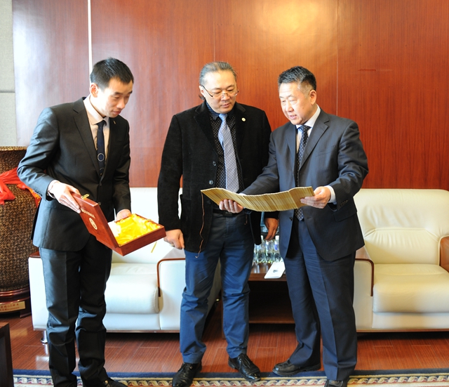 校长马立群代表学校向度卡尔让波夫副校长先生赠送了《齐大赋》等礼物。