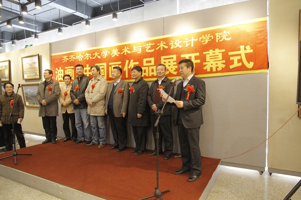 开幕式后,参加开幕式的领导、嘉宾和在场师生观看了画展。省教育厅领导对本次画展的成功举办给予肯定,对齐大美术与艺术设计学院教师的文化修养、艺术功力和艺术追求表示赞许。