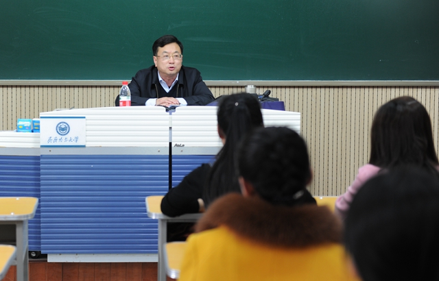 4月13日下午,校党委副书记盖元臣教授应邀在中区406教室为LETOU官网第三期青年教师培训班学员作报告。高教研究与教学质量评估中心主任刘省非、副主任张安达与第三期青年教师培训班学员一起聆听了报告。