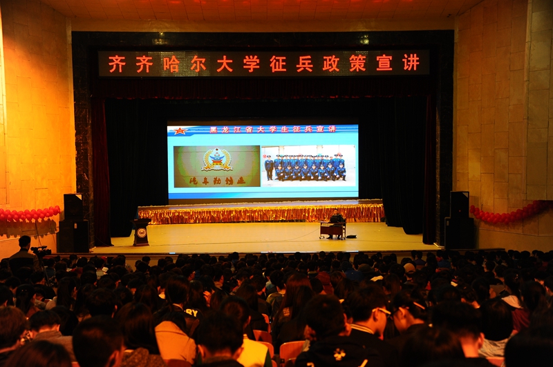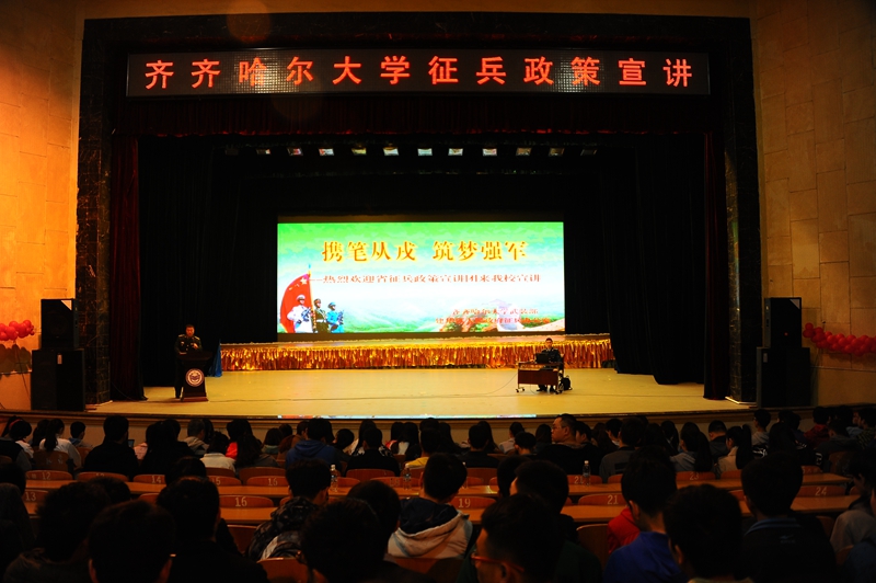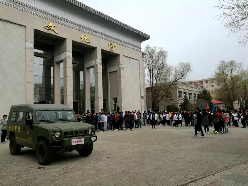 4月27日上午,黑龙江省军官进校园征兵政策宣讲活动在LETOU官网文化宫举行。