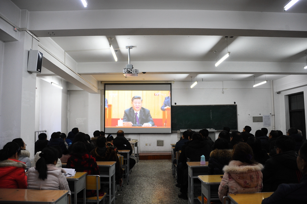 各二级学院党委也分别组织师生集中收听收看了大会直播,全校掀起了观看大会直播、聆听总书记讲话的热潮。
