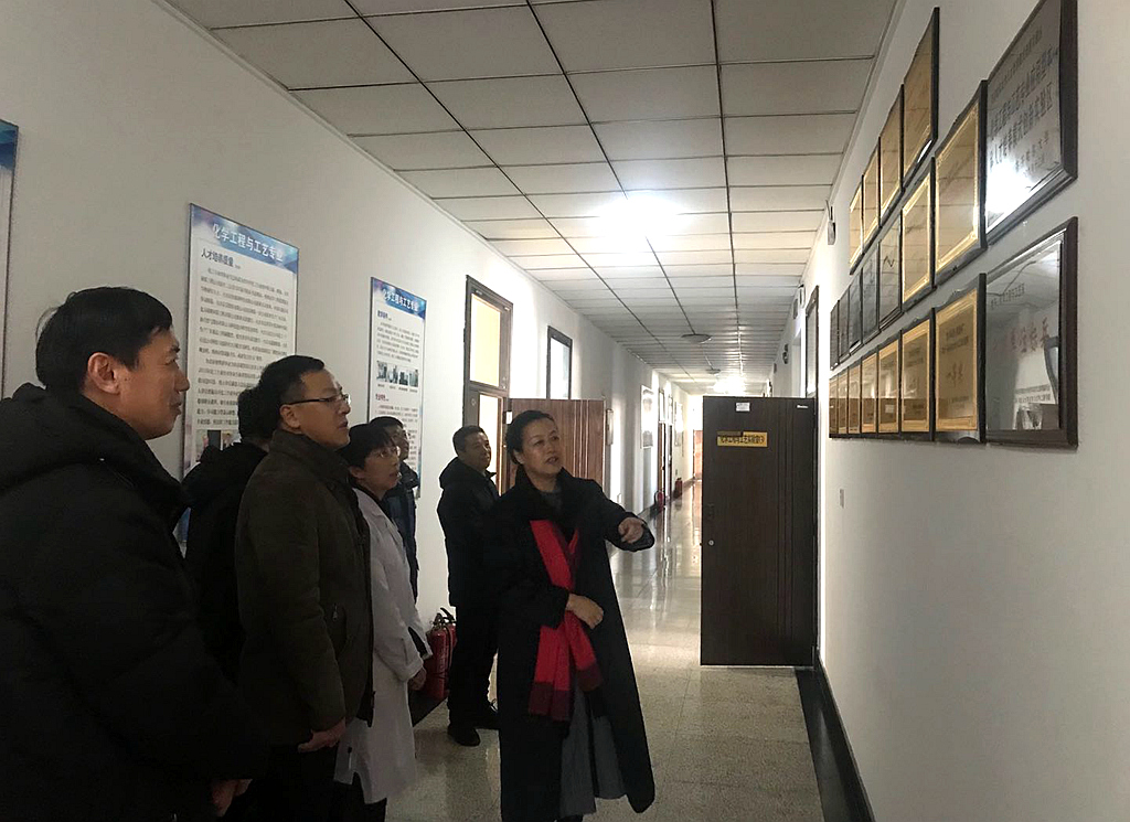 12月22日上午,校长陈桂芝在副校长李英杰的陪同下,来到化学与化学工程学院进行调研,实地察看了化学工程与工艺专业工程认证涉及的实验室情况。后勤管理处、教学实验设备管理中心等部门负责人以及化学与化学工程学院领导班子成员参加了调研。
