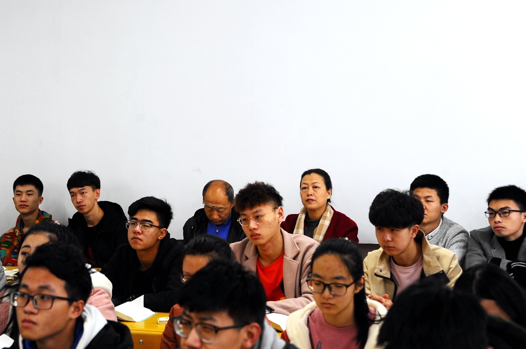 陈桂芝在和两个课堂的大一同学交流时叮嘱大家要珍惜学习机会,不让“玩命的中学、快乐的大学”这种现象在自己身上出现,努力学习,将来成为一个对国家对人民对社会有用的人才。