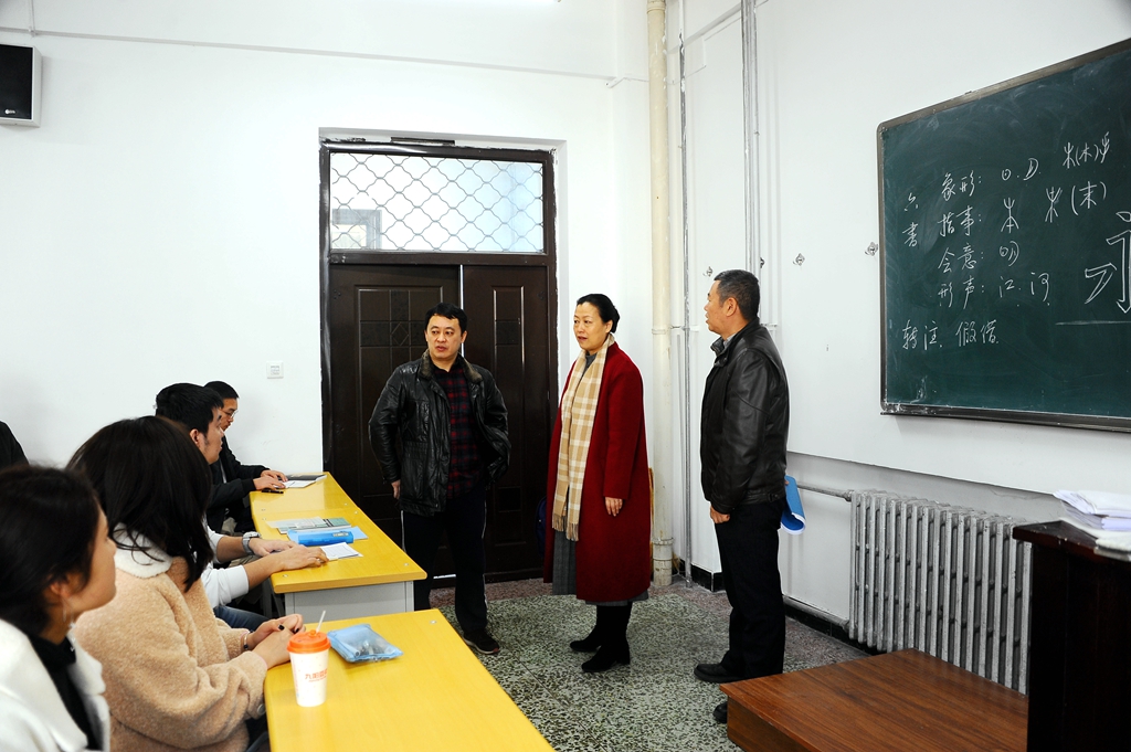 陈桂芝先后来到西区主楼202教室、439教室,随机选听了《高等数学I》和《书写技能》两门课,并在课后与两位任课教师以及同学们进行了深入交流,了解课程情况。