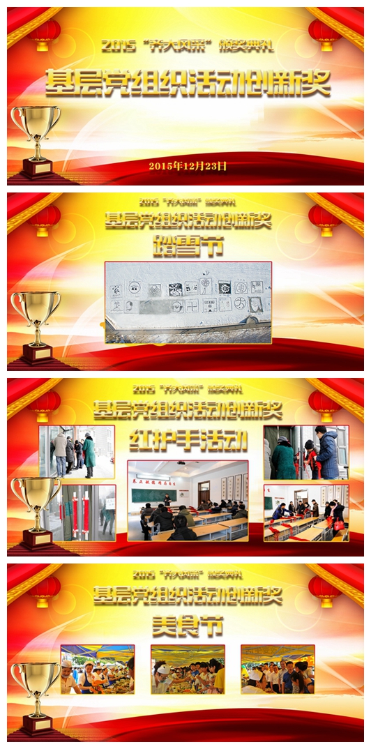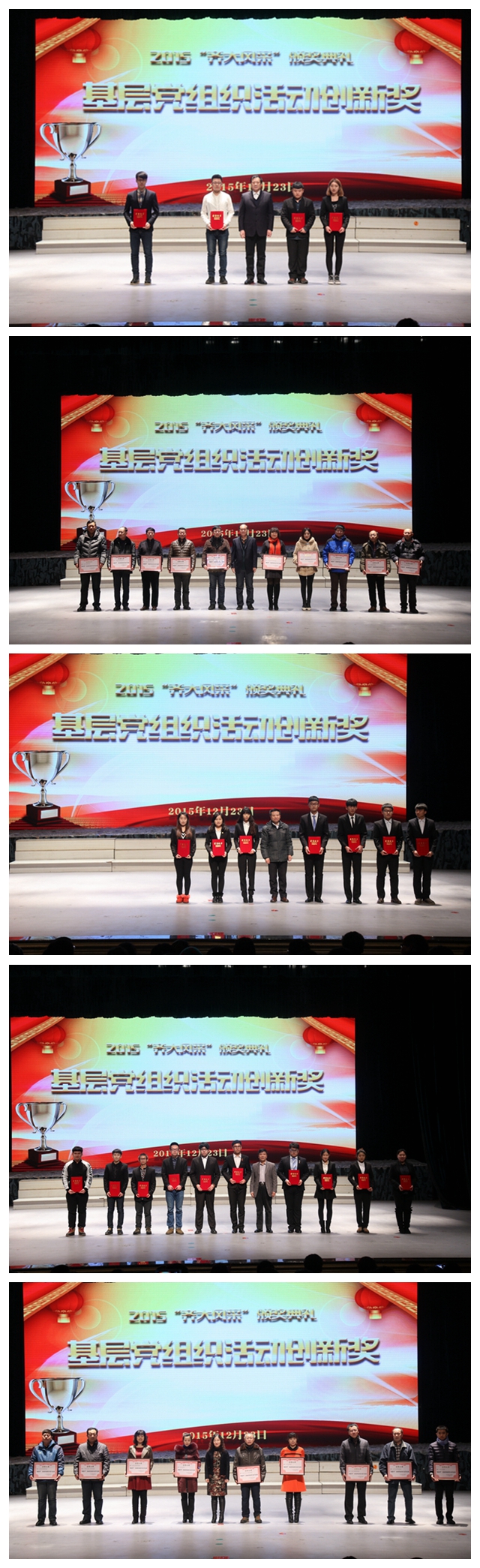 为深入贯彻落实中央、省委和省委高校工委关于加强基层党组织建设的部署和要求,推动“三严三实”专题教育深入开展,鼓励和引导基层党组织结合实际,创新活动形式和内容,充分发挥基层党组织战斗堡垒作用和党员先锋模范作用,不断激发党组织活力,学校党委常委会议研究决定,对2015年基层党组织开展的创新活动进行表彰。