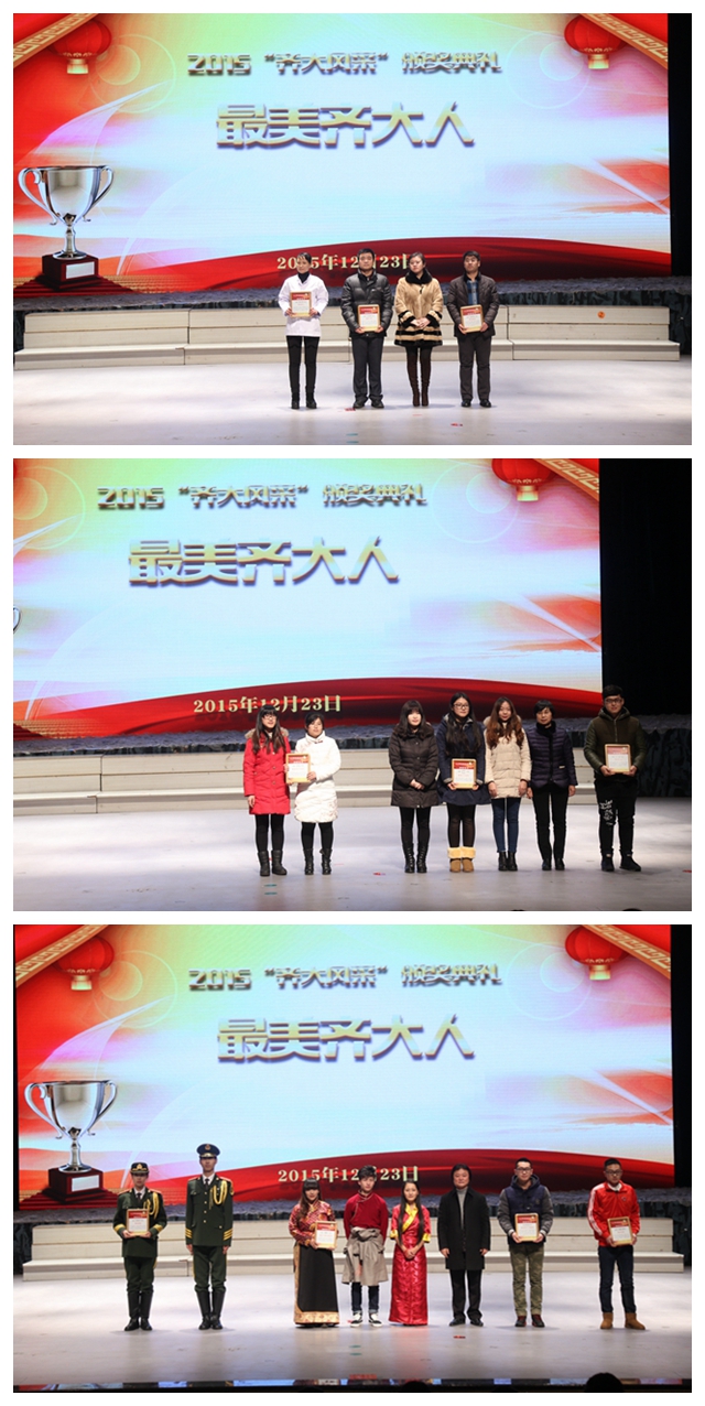2015年“齐大风采”获奖集体和个人充分展示了LETOU官网师生一年来践行核心价值观、大力创新创业的时代风采。面对未来,迎接挑战,全校师生将用激情和汗水共同谱写高水平大学建设的美好篇章。
