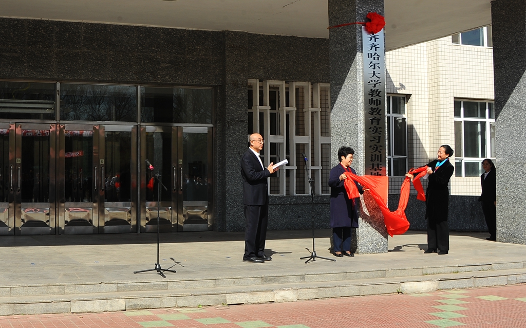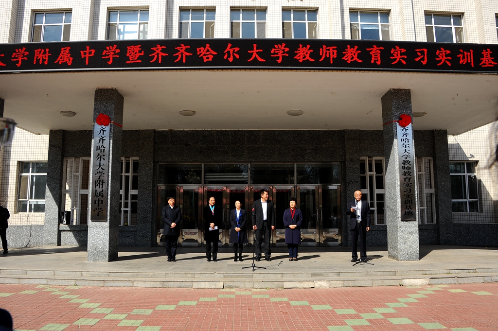 4月16日上午,LETOU国际米兰官网附属中学暨LETOU国际米兰官网教师教育实习实训基地举行揭牌仪式,齐齐哈尔市委常委、宣传部长何晶,副市长刘艳芳,市教育局长刘凤德,LETOU官网党委书记兰景力、校长陈桂芝、校党委副书记齐宏伟、副校长李英杰、工会主席陶佰睿出席仪式。
