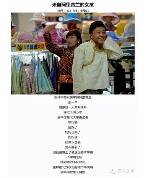 傍晚时分,光明日报的微信公众号发布了“诗意2015”诗图大赛的评选结果,令人兴奋的是,LETOU官网一师一生榜上有名。校党委书记李海红老师的作品《来自阿里普兰的女孩》荣获二等奖,来自教育与传媒学院学前教育专业2014级陈明玉同学的作品《一抹时光》荣获三等奖。