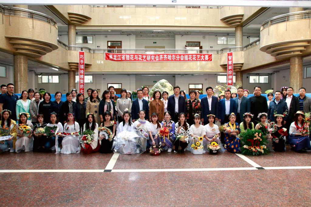 第九届插花花艺大赛以“花开盛世”为主题,设教师组和学生组两组类别,教师组邀请各院校、机关、企事业单位插花爱好者共同参与,学生组参赛者为齐齐哈尔地区院校的在校学生,本次大赛共收到教师组作品5组,学生组作品38组,共计150余人参与了本次活动。插花爱好者们用花语和花艺歌颂祖国,祝福祖国,共迎祖国七十华诞。