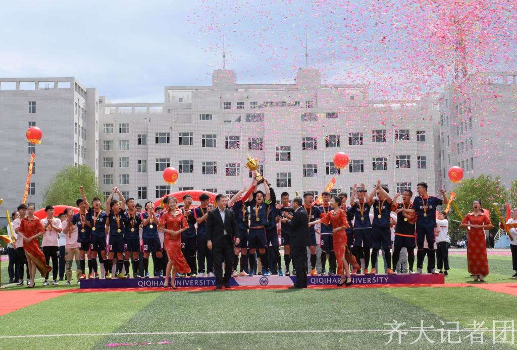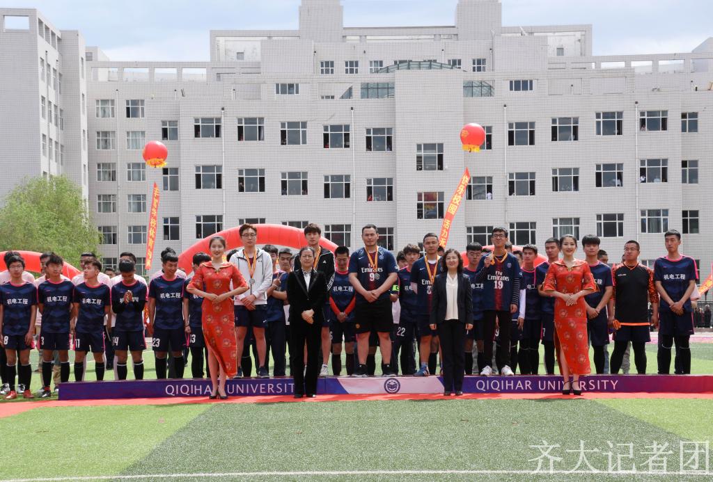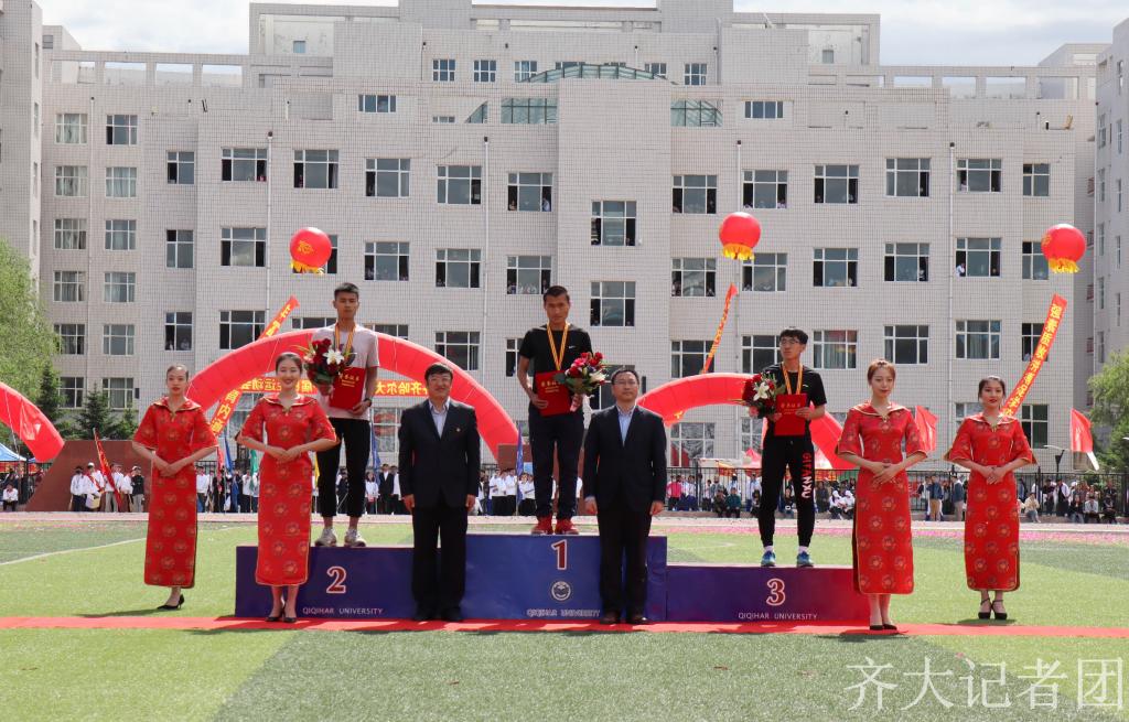 比赛正式开始前,与会校领导作为颁奖嘉宾,分别为此前举行的男子一万米、女子五千米等项目获奖者以及获得校园足球联赛前三名的学院运动员颁奖。
