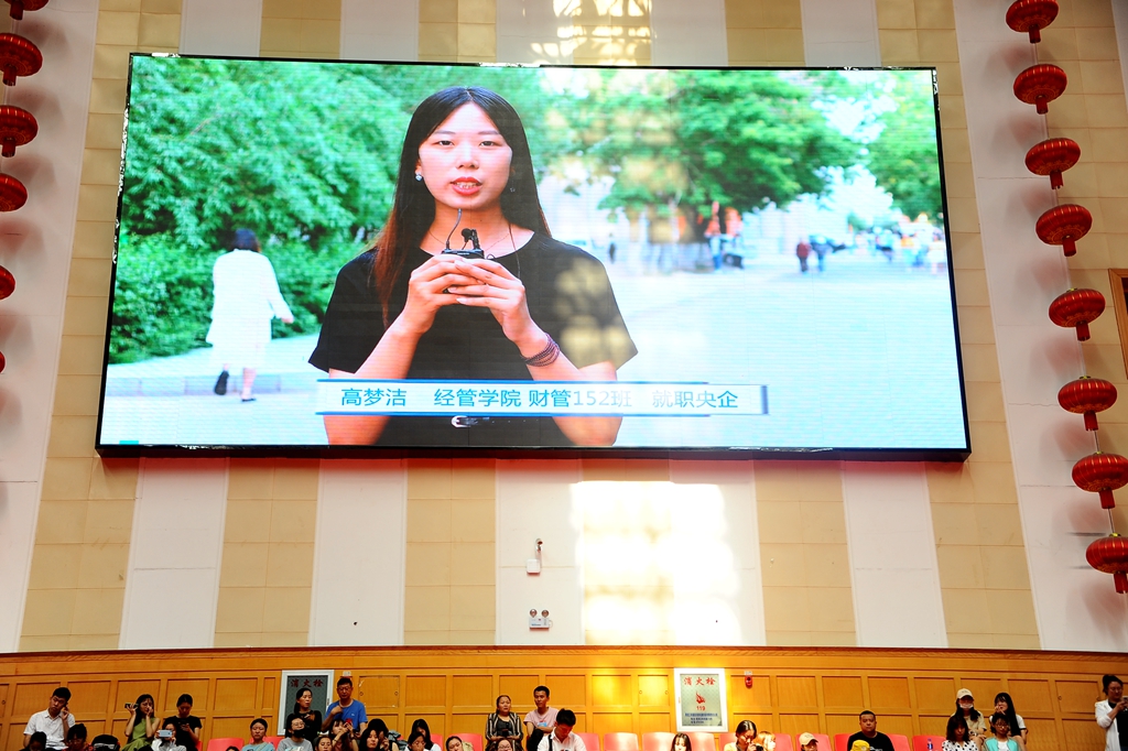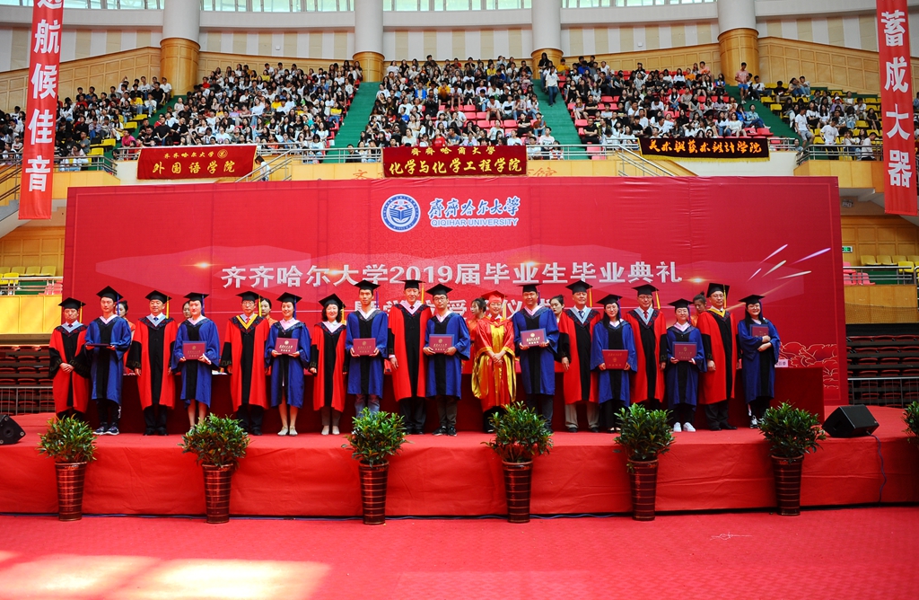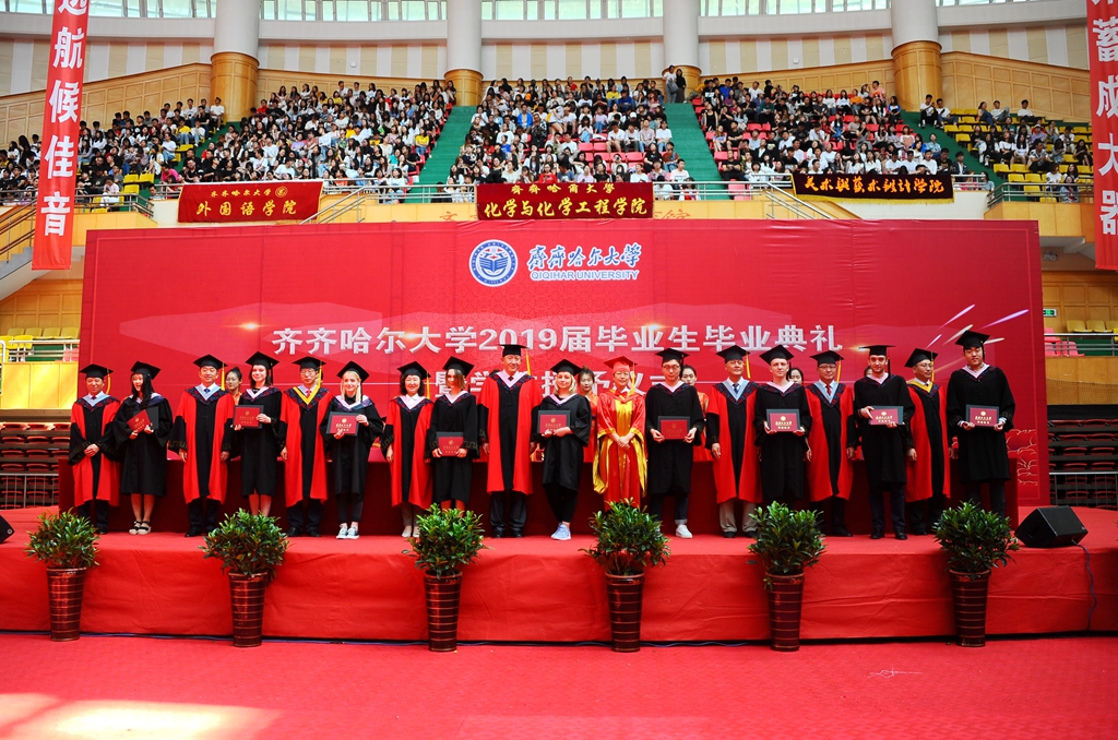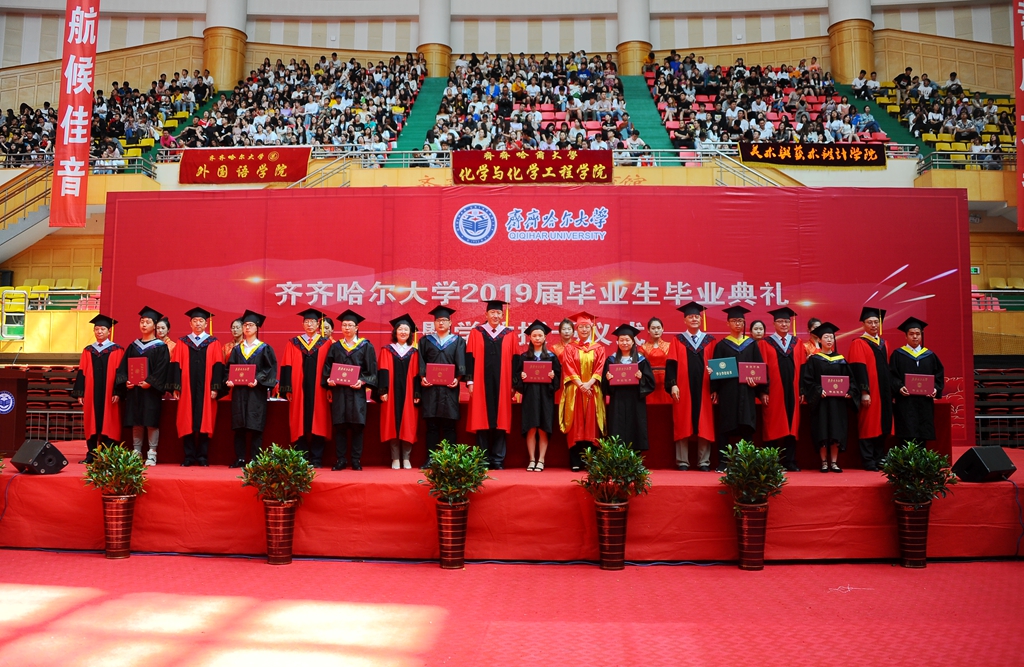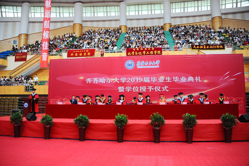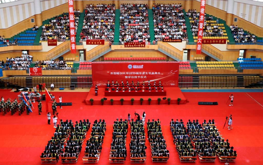 在毕业典礼正式开始前,播放了校党委宣传统战部精心制作的2019届毕业生毕业感言视频《感恩齐大 放飞梦想》,共录制了27位2019届优秀本科生、研究生、留学生代表对大学生活的深情回忆,对母校的无限眷恋,对未来的美好畅想。(点击观看《感恩齐大 放飞梦想》)