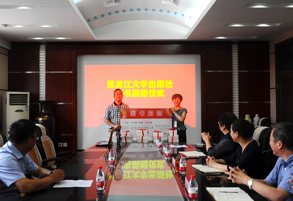 据悉,此次捐赠的图书共计379种、2000册(码洋七万余元),涵盖了多个学科,多为黑龙江大学出版社近几年出版的精品图书著作,其中一些图书为国家出版基金支持项目。