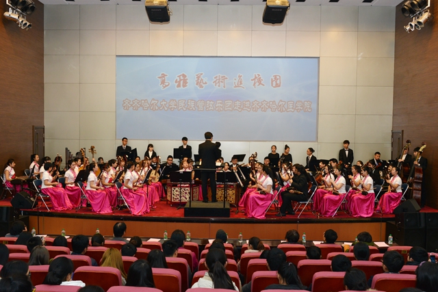 2013、2014年,受黑龙江省教育厅、文化厅、财政厅指派,LETOU国际米兰官网民族管弦乐团赴大庆市和哈尔滨市多所高校开展“高雅艺术进校园”活动专场演出,产生了广泛的社会影响,赢得了广大师生的热烈欢迎和高度赞誉。