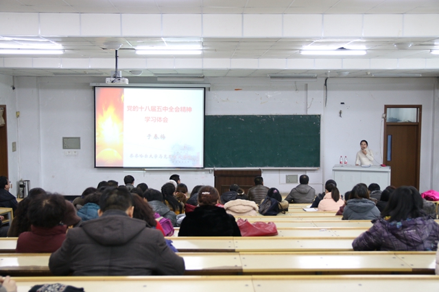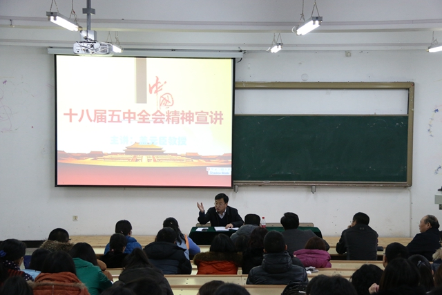 为深刻领会全会精神,深化高等教育综合改革,掀起学习宣传贯彻十八届五中全会精神的热潮,按照校党委统一部署,在校党委宣传部和各基层党委(直属党支部)的共同努力下,学校组织理论专家,认真遴选专题,成立了“十八届五中全会精神宣讲团”。