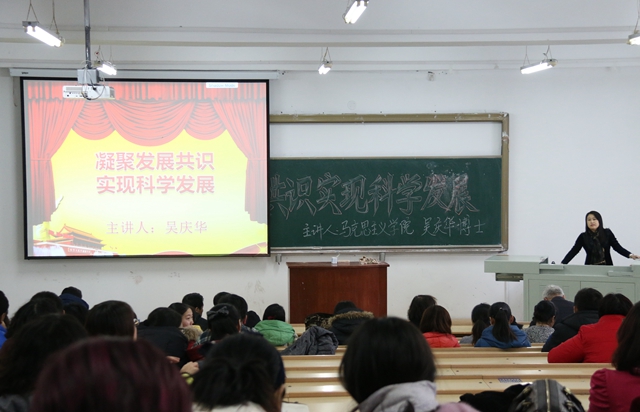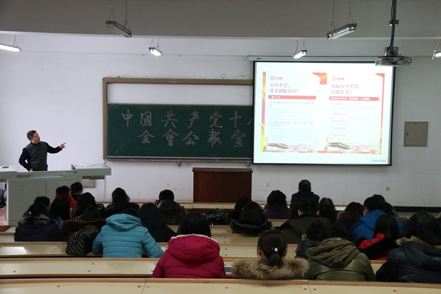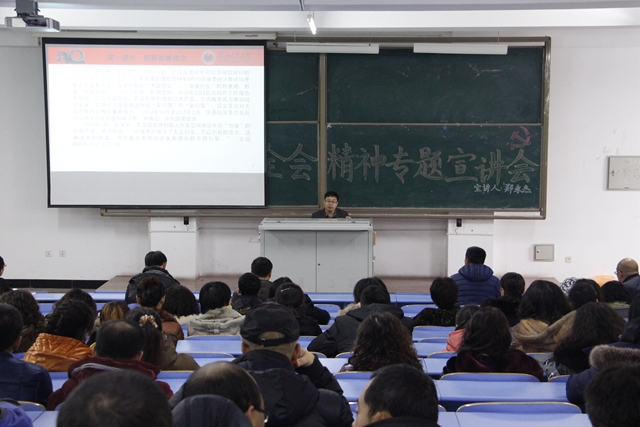 12月2日,十八届五中全会精神宣讲活动继续深入推进。宣讲团成员盖元臣、郑永杰、杨淳、伊全胜、于春梅、吴庆华等分别在学校六个分会场同时为文学与历史文化学院、哲学与法学学院、化学与化学工程学院、现代教育技术中心、后勤管理处、外国语学院、理学院、建筑与土木工程学院、国际教育学院、教育与传媒学院、公共外语教研部等十余个学院、职能部门的师生做了专题宣讲报告。