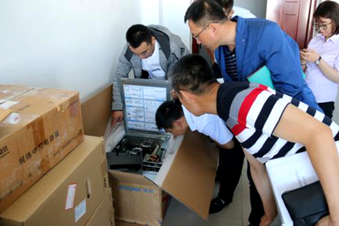 随后,陶佰睿在相关人员的陪同下对中行投资设备进行验收,并走访慰问校园一卡通制卡工作人员。