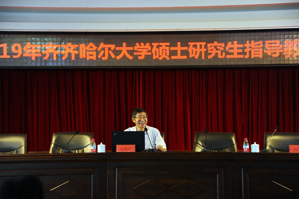 9月7日上午,学校在林校校区求实楼510报告厅召开 2019年硕士研究生指导教师培训会,副校长张树军出席会议,全校242名硕士研究生指导教师参加了会议。会议由研究生部党委书记、主任沙伟主持。