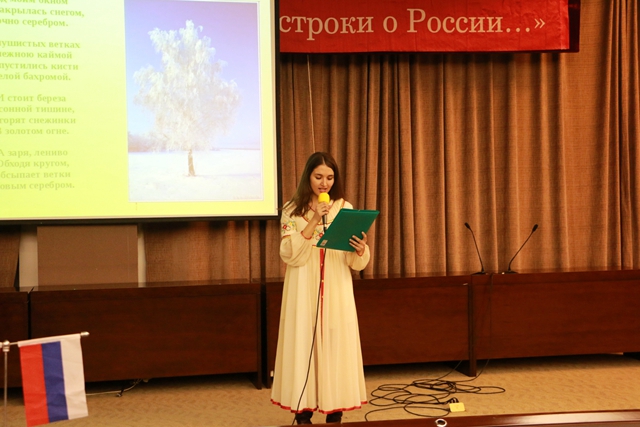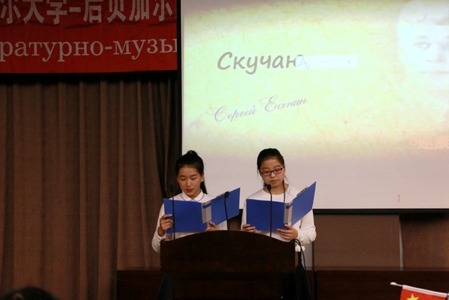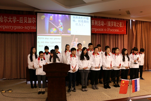 14日至16日,为期三天的《俄罗斯之夜》活动中,两校师生共同举办了《俄罗斯诗歌、散文朗诵比赛》,《庆祝俄罗斯伟大诗人叶赛宁诞辰120周年文学会客厅》,《俄罗斯经典歌曲比赛》,《俄罗斯短剧展演》,以及主题为“俄罗斯、祖国、胜利”的庆祝伟大俄罗斯卫国战争胜利70周年《文学音乐会》和俄罗斯国情知识竞赛等系列活动。
