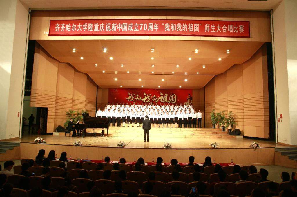 通过举办“我和我的祖国”师生大合唱比赛,充分展示齐大人热爱祖国、团结向上、奋发进取的精神风貌,进一步激发了全校师生员工的爱国热情。广大教职员工一致表示,将以习近平新时代中国特色社会主义思想和党的十九大精神为指引,牢固树立“四个意识”,坚定“四个自信”,做到“两个维护”,坚守教育报国初心,牢记立德树人使命,以培养担当民族复兴大任的时代新人为己任,做党和人民满意的“四有”好老师,为实现中华民族伟大复兴的中国梦做出新的更大的贡献。