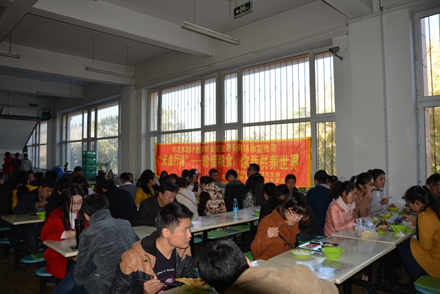 10月19日中午,研究生团委在东区食堂组织研究生开展 “光盘行动”活动,号召同学们树立“节约资源,爱惜粮食”节约环保生活观。该活动得到了校领导的高度重视与大力支持。校党委书记李海红,校党委副书记盖元臣,校党委常委、副校长邓启刚、研究生部党委书记滕永富、校团委副书记苏醒,研究生部副主任田丽军、研究生部团委书记张哲等与研究生同学一起到窗口刷卡打饭,共进午餐,践行“光盘行动”,传递节约粮食的正能量。