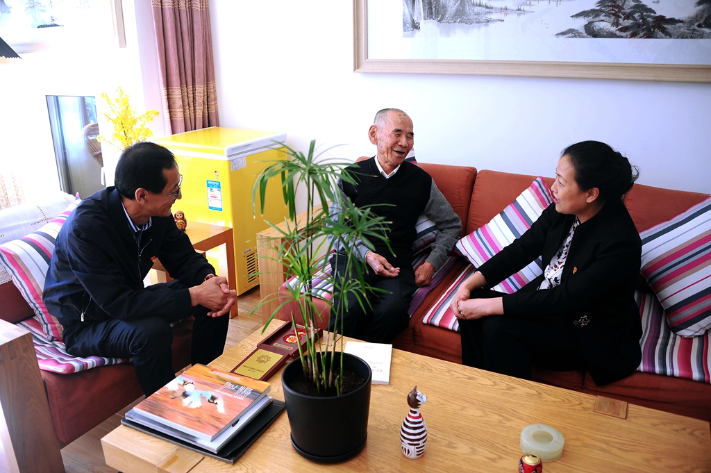 陈桂芝表示,当前学校正在开展“不忘初心、牢记使命”主题教育,我们到老同志家中不只是走访慰问,更重要的是要学习和传承老同志身上的革命传统、红色基因,以此教育并激发广大党员干部的责任感和使命感。