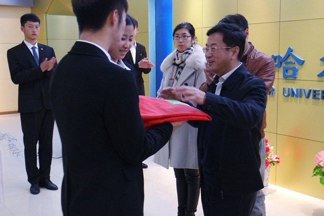 校党委副书记盖元臣给“日新”班授旗,并做了热情洋溢的讲话。 他首先向本期“日新”班的成立和全体学员的加入表示热烈的祝贺,并向全体团学骨干提出三点希望和要求。一是,树立正确的世界观、人生观、价值观,坚定理想信念,牢记责任使命,明辨是非曲直;二是,树立模范带头观念,勤奋学习、勇于实践、服务同学,努力成长为全校团员青年的学习榜样和坚定的青年马克思主义者;三是,要树立创新创业观念,志存高远、脚踏实地、敢为人先,在创新创业的不懈奋斗中谱写出更加壮丽的青春之歌。
