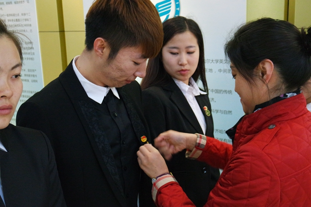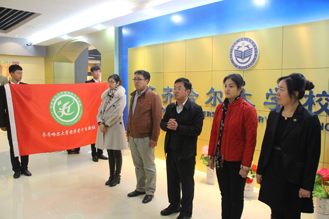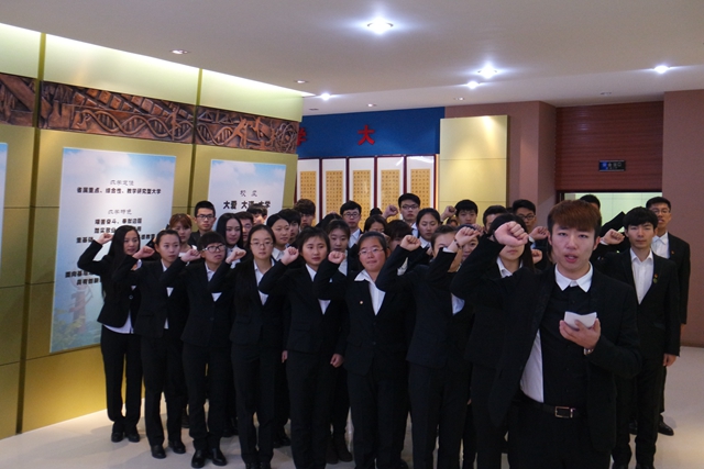 校团委副书记苏醒向全体学员授予了“日新”班班徽。“日新”班全体学员在团支书李天宇的带领下面向班旗宣誓,做出努力使自己成为理论扎实、思想过硬、会学善用的社会主义合格接班人的庄严承诺。活动结束后,全体学员有序参观校史馆,感受学校发展建设的光辉历程,并在校史馆前同与会老师合影留念。