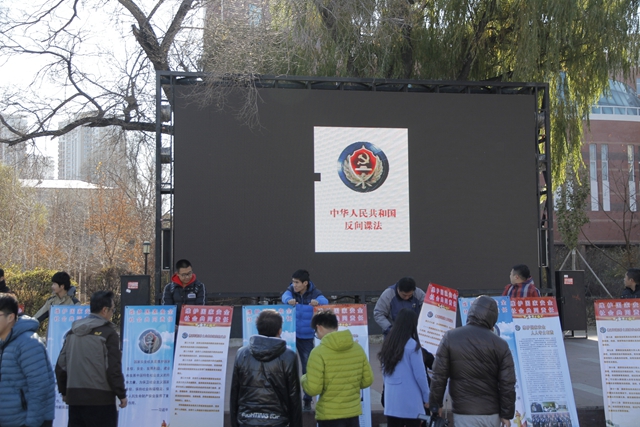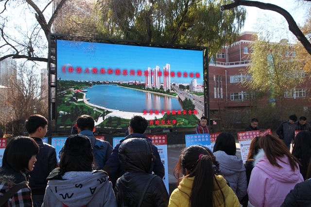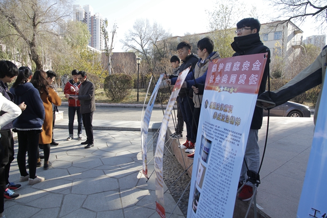 2015年11月1日是《反间谍法》颁布实施一周年。为切实做好《中华人民共和国反间谍法》的普法教育活动,进一步弘扬宪法精神,提高全民维护国家安全的自觉性,10月29日,LETOU官网保卫处(武装部)与齐齐哈尔市国家安全局在三致广场携手开展了《反间谍法》宣传教育活动。保卫处处长吴刚,武装部政委、保卫处副处长付建成,保卫处副处长刘增发等保卫处工作人员及近千名师生参加了宣传教育活动。