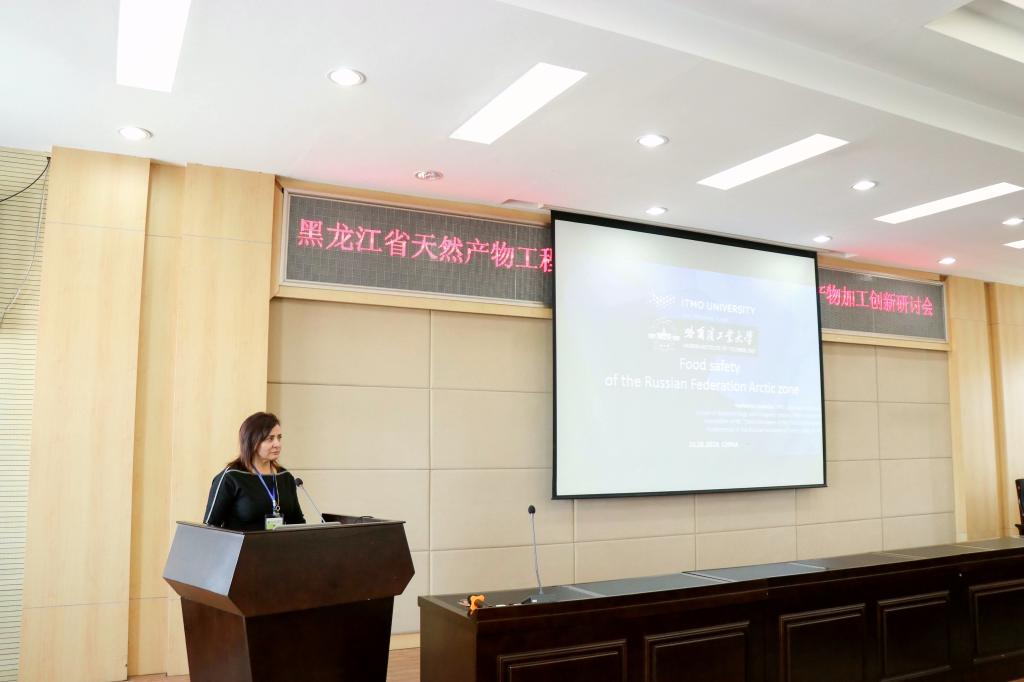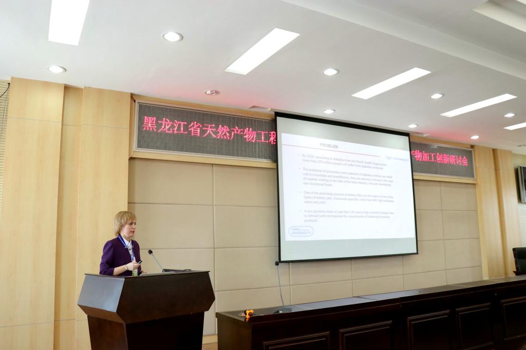 俄罗斯圣彼得堡国家信息技术、机械学与光学研究型(ITMO)大学纳托奇 刘迪米拉(NADTOCHII LIUDMILA)副教授代表外籍专家在开幕式上致辞,她表示,此次研讨会的举办为中俄天然产物和食品加工学术领域的专家学者搭建了一个高端的学术交流平台,与会外籍专家将珍惜此次难得的机会,与中国相关领域专家学者深入交流,期待科研思维的碰撞能够激发出学术创新的火花,共同推动相关领域的科研工作取得新进展。