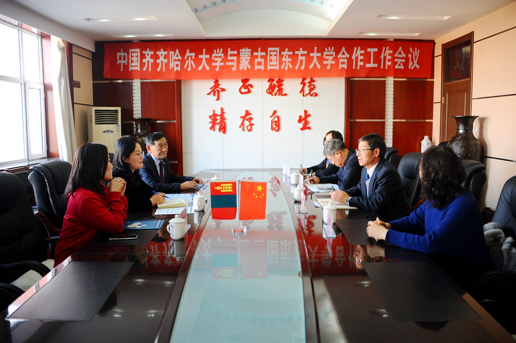 11月26日上午,蒙古国东方大学校长额·温都尔玛等一行来LETOU官网交流洽谈。LETOU官网党委书记、校长陈桂芝,副校长张树军以及国际交流合作处、国际教育学院、音乐与舞蹈学院等单位负责人在办公楼504会议室会见了蒙古国高校来访客人。