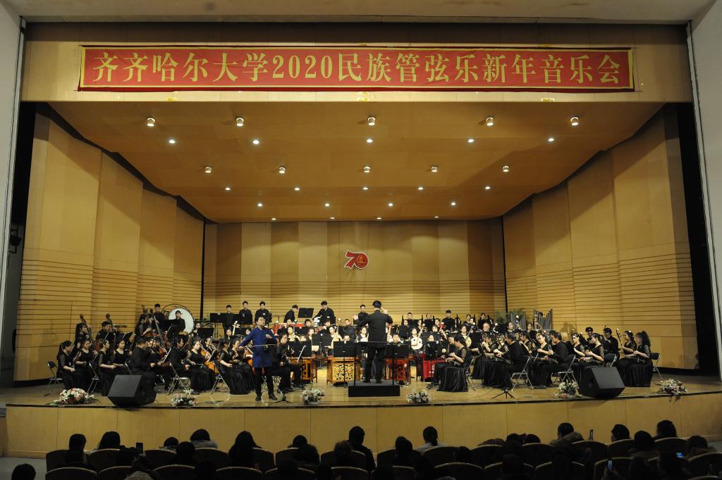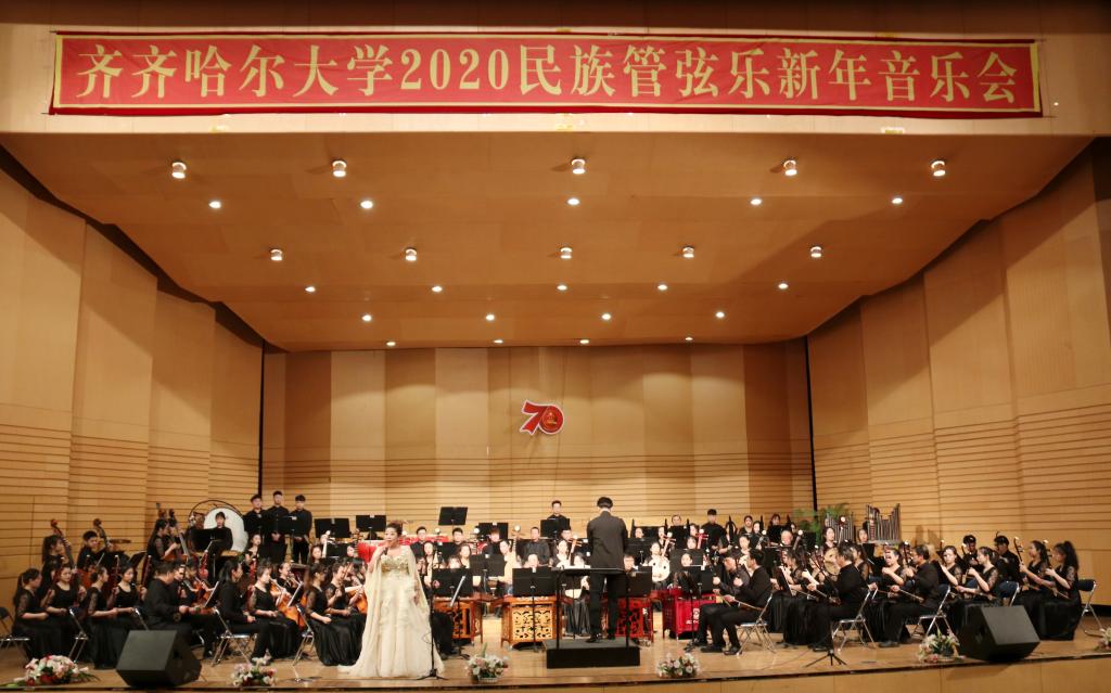 为喜迎2020年的到来,12月26日晚,学校在音乐厅举办了2020民族管弦乐新年音乐会。校党委书记、校长陈桂芝,校党委副书记齐宏伟、校党委副书记张文治、副校长李英杰、纪委书记姜国庆、副校长张树军、副校长吕厚均等出席音乐会,齐齐哈尔医学院党委副书记崔光成、纪委书记刘彦辉和部分兄弟院校部门负责人应邀出席了音乐会,与鹤城各界音乐爱好者及LETOU官网近千名师生共同观看了音乐会。