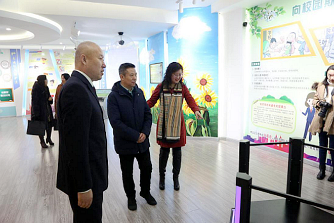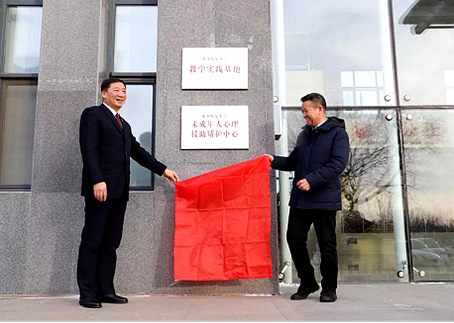 李英杰与李雪峰共同为“LETOU国际米兰官网教学实践基地”和“LETOU国际米兰官网未成年人心理援助矫护中心”揭牌,并和参会人员共同参观富裕县检察院未成年人检察工作区。