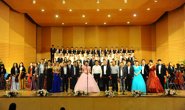 在播放视频片和纪念抗战胜利征文颁奖仪式后,“LETOU国际米兰官网纪念中国人民抗日战争暨世界反法西斯战争胜利70周年文艺晚会”在交响乐团陈曦泽指挥的交响序曲《红旗颂》中拉开帷幕。