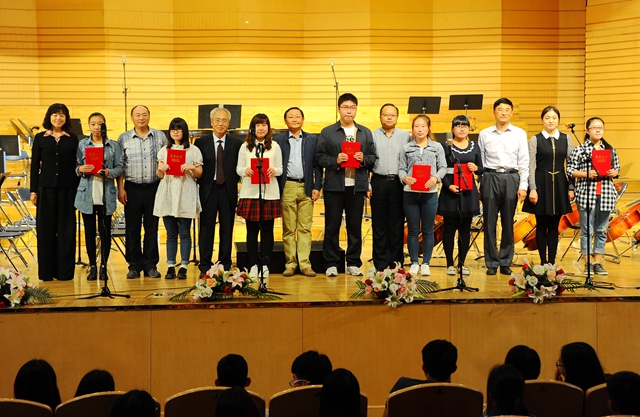 校党委书记李海红、校长马立群,校党委常委、副校长李英杰,校党委常委、工会主席李敏义为获得一等奖的代表颁奖