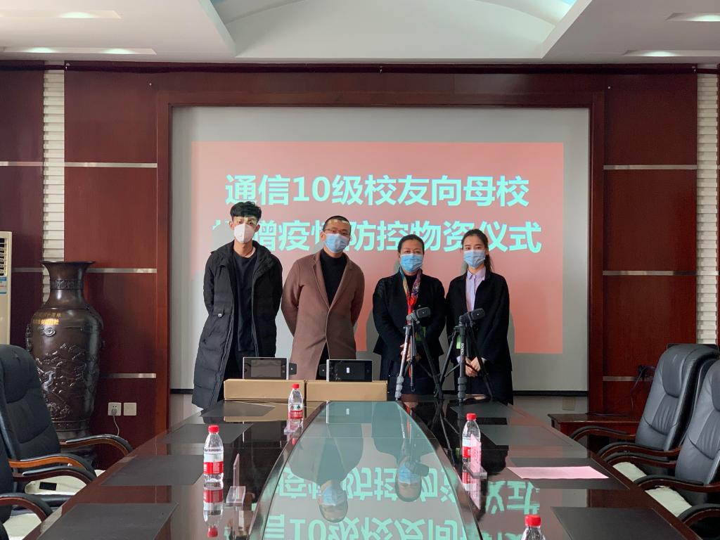 谭东悦在发言中表示,感恩母校的培养和关怀,新冠肺炎疫情爆发以来,母校的疫情防控工作始终牵动着我们的心,在了解到学校急需防疫物品后,我们将两套人脸识别红外测温仪捐赠给学校,希望通过捐赠疫情防控设备,在疫情防控的关键时刻尽一份绵薄之力,与母校同舟共济,共同抗击疫情。