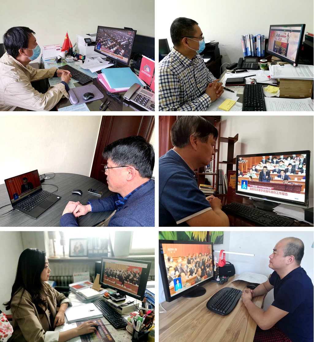 “两会”开幕直播期间,校党委班子成员陈桂芝、齐宏伟、张文治、王刚、李英杰、姜国庆、张树军、吕厚均、陶佰睿、王晓梅、马文辉第一时间在各自办公室分别观看了全国政协十三届三次会议开幕盛况,并在学校办公楼519会议室集中观看了十三届全国人大三次会议开幕直播,认真听取工作报告。大家聚精会神、仔细聆听,认真记录了重点要点。
