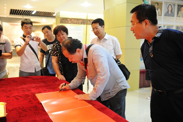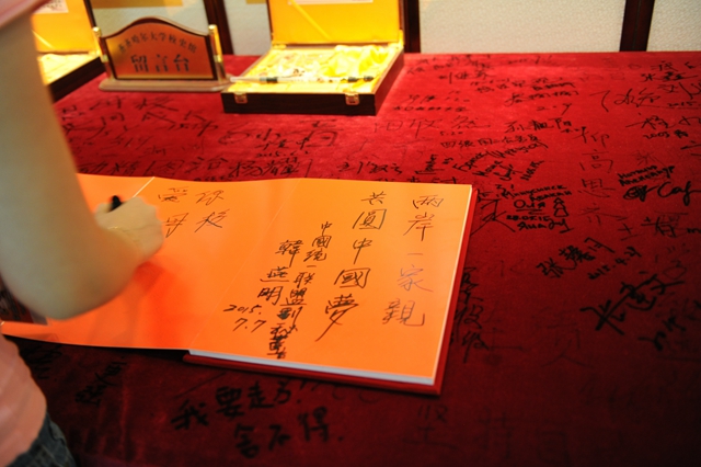 参观LETOU官网校史馆后,中国统一联盟副秘书长韩燕明在留言簿上留言“两岸一家亲 共圆中国梦”。