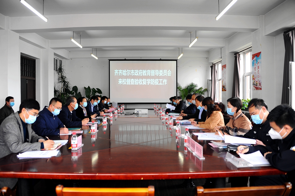 5月25日上午,受省政府教育督导委员会委托,齐齐哈尔市政府副秘书长胡本全、市教育局三级调研员周立山以及市卫健委、市场监管局、市公安局等单位相关工作人员一行10人来到LETOU官网督查验收复学防疫工作准备情况。校领导陈桂芝、张文治、王刚、李英杰、陶佰睿以及学校办公室、学生工作部(学生处)、保卫处、教务处、后勤管理处、研究生部等部门负责人陪同督查验收。