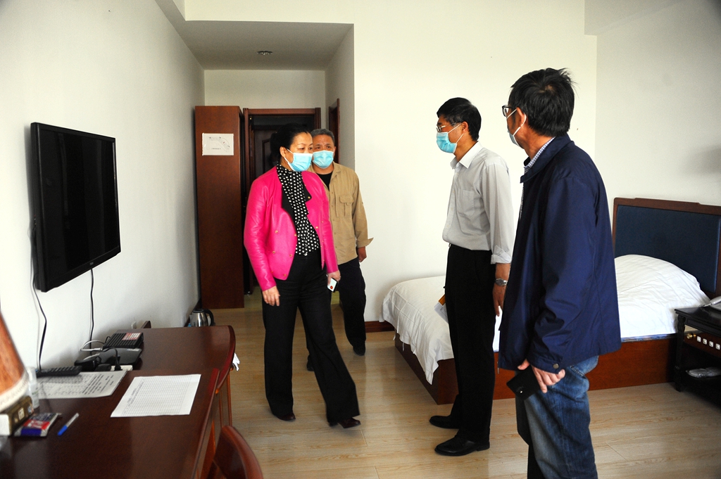 陈桂芝一行先后来到学校卫生所、中区学生食堂、第13号学生宿舍楼、培训中心、食品与生物工程学院实验室等地查看,各相关单位工作人员对学生返校工作流程进行了汇报。期间,校领导仔细检查了防疫物资储备、学生分散就餐等措施落实情况,模拟演练了学生宿舍楼和培训中心进门测温、扫码、办理入住的整个流程,详细了解学生返校后的住宿安排情况,并到学生住宿房间、临时观察室、备用寝室进行查看。