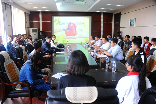 8月31日上午10时,学校在中区行政楼504会议室举行了“温馨 幸福 快乐 感动”捐赠仪式。爱心人士叶祥华、于翔海先生亲临学校并为LETOU官网27名获助学生颁发了助学善款。